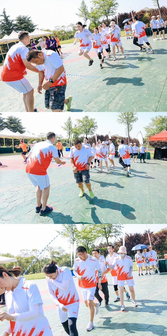 下午,健身嘉年华趣味运动会在绿舟大草坪举行,我校教工队兴致勃勃地参加了合力跳长绳、一投定乾坤、同心齐鼓舞、锁定新目标、奋楫同舟进共五个项目的比赛,展现了团结协作、积极向上、顽强拼搏的体育精神。