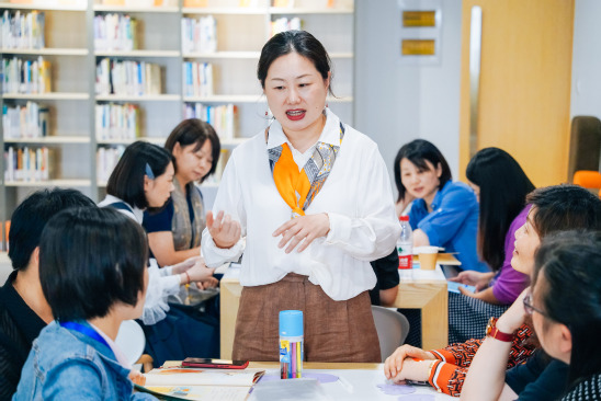 上海师范大学天华学院学前教育学院院长滕薇和嘉定区双丁路幼儿园潘晓敏园长共同为园长们带来了一场生动有趣的绘本工作坊:《读懂幼儿、玩转绘本——绘本在幼儿园课程中的应用》。工作坊分“我来读,你来议”、“我来讲,你们评”、“你们读、我来听”三个环节,从我们都是读者、我们都是老师、我们是阅读伙伴三个角度引导园长们如何读透玩转绘本,促进了园长们互动与沟通的同时,也使园长们对早期绘本阅读有了更加深刻的思考与感悟。