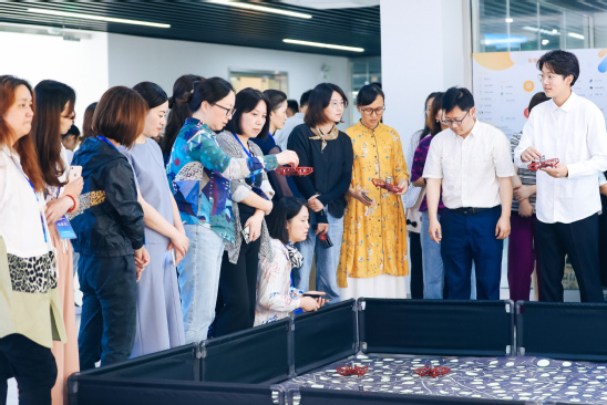 天华学院人工智能学院院长凌旭峰带来《幼儿行为数据的智能化采集和观察》主题讲座。讲座从人工智能学院八大项目建设成果、智慧教育、幼儿的行为观察,以及人工智能四个方面讲述了人工智能教育作为新兴技术在未来社会发展中的潜力和学前儿童观察和数据采集的重要性。当前,学前儿童的思维方式和学习方式都离不开媒体技术和人工智能技术的支持,利用人工智能技术辅助幼儿教育,不仅可以解决当前幼儿教育中存在的一些问题,还有利于幼儿教育在一定程度上实现自动化、智能化和个性化。讲座最后,凌旭峰博士和人工智能学院的师生还与园长们进行了多种形式的互动,现场体验了无人机和机器人操作,并运用激光标刻技术为园长制作了专属纪念徽章。