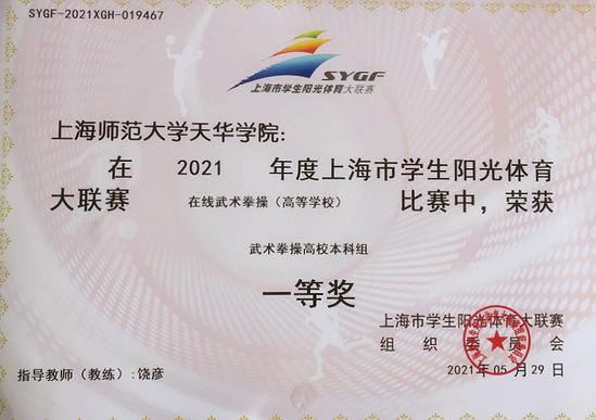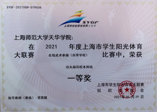 5月29日,2021年上海市学生阳光体育大联赛(在线)武术拳操比赛正式开赛,天华学院武术拳操队、功夫扇队联袂出战,两队队员士气高昂,誓为天华夺得锦标。