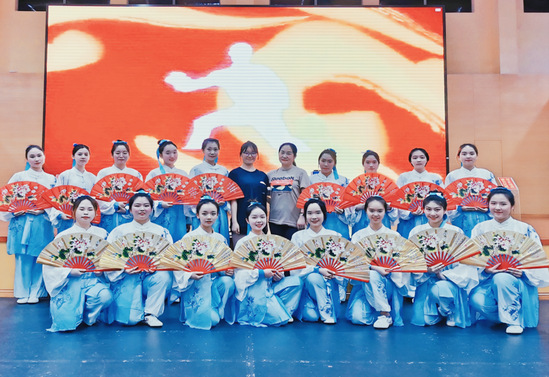 十年磨一剑,香自苦寒来。2010年,我校女子功夫扇队正式成立,由答英娟老师任教练。2015年,邹董事长和学校领导对天华体育教学提出了更高要求:弘扬传统体育文化,增强天华学生体质。具体来说,即“女生人人学会功夫扇,男生个个能打军体拳”。通识学院体育教学部积极落实上级部署,历时两年完成课程改革,确立以功夫扇课程为核心,运动队及学生社团为辅的“课内外一体化”综合训练体系。功夫扇队(社团)成立至今,共蝉联2016至2021年6次上海市学生阳光体育大联赛武术拳操比赛(高校组)一等奖,分别在2016年和2018年开展350人功夫扇团体操表演活动,2019年上海师范大学天华学院元旦迎新文艺汇演、2020年上海公益会半日暨嘉定工业区“同心园”楼组自治风采展示活动、2021年上海民办高校国防教育推进会展示等特色活动。形成了集课程教学、竞技比赛、课余活动、展示交流等为一体的独具特色的“天华功夫扇文化”,为推动中华传统体育文化在大学校园的传承做出了贡献。