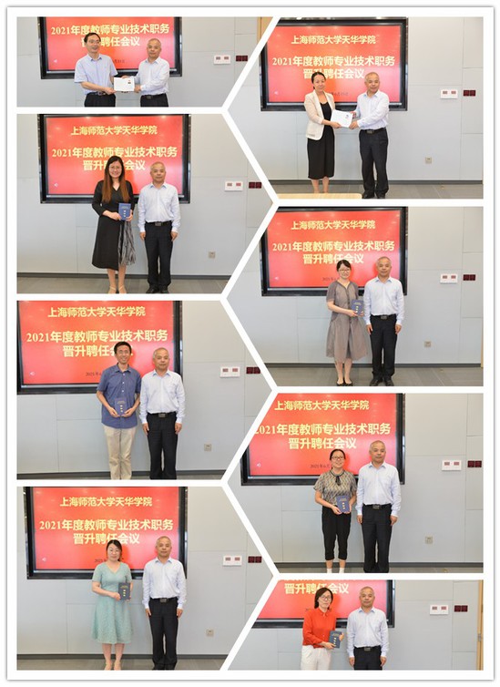 会上,曹卫老师宣读了《关于聘任顾庆等八位同志为副教授职务的决定》和《关于聘任侯博奡等十位同志为讲师职务的决定》。随后叶校长亲自给每位教师颁发了职称聘任证书,并合影留念。