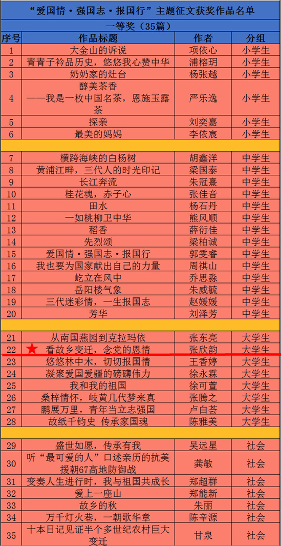 我校学子在“学习强国”主题征文活动中荣获全国一等奖近日,“学习强国”学习平台“爱国情·强国志·报国行”主题征文获奖作品揭晓,我校20级学前教育(国际合作)2班张欣韵同学所创作的《看故乡变迁,念党的恩情》荣获大学生组一等奖。去年10月至12月期间,我校党委组织部、马克思主义学院、学保处面向全体学生,联合举办了“爱国情、强国志、报国行”主题征文活动。在历时三个月的活动中,共计收到来自7个二级学院150名学生的参赛文章。经过层层挑选,张欣韵的这篇文章脱颖而出,并作为优秀作品由马克思主义学院报送到平台。据报道,“学习强国”此次征文活动共征集到作品20.1万多篇。“学习强国”学习平台在各省级学习平台评选、推荐的基础上,筛选出3300件优秀作品,组织专家评审团队,本着公平、公正的原则,经过严格的初评、复评,评选出获奖作品875篇。本次活动一等奖作品共计35篇,其中大学生组为8篇。“学习强国”征文活动一等奖获奖作品名单作者以2020年7月20日王家坝闸时隔十三年再次开闸蓄洪作为切入点,一方面讴歌了濛洼人舍小家,保大家,护国家的可贵精神,另一方面展现了党中央和各级政府对故乡濛洼人民的关怀备至。濛洼地区由于所处的特殊地理位置与有限的自然资源,发展受到严2021-04-02 -