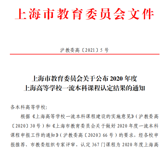 喜讯!我校3门课程入选2020年上海市级一流本科课程认定名单2021年1月,上海市教委公布2020年市级一流本科课程认定结果(沪教委高〔2021〕5号),我校3门课程入选2020年市级一流本科课程,包括2门线下课程,1门线上线下混合式课程(课程名单如下)。上海市级一流本科课程是市教委深入贯彻落实党的十九大精神,全面落实立德树人根本任务,深化教育教学改革的重要举措;也是国家“双万”计划的重要组成部分。市教委计划经过两年左右时间,通过“先建设、重应用、后认定”的方式,建设1000 门左右市级重点课程,认定 600 门左右市级一流课程,构建具有上海特色、多类型、多样化的一流本科课程体系。学校高度重视课程建设和申报工作,成立一流本科课程建设领导小组,制定《上海师范大学天华学院一流本科课程建设规划》,确定了校级活力课堂建设、市级重点课程建设、市级一流本科课程认定、国家级一流本科课程认定的课程建设阶梯。此次市级一流本科课程认定,经过学校的精心组织和各课程负责人的认真准备,在与全市的公办、民办高校同平台竞争中,取得优异成绩。希望3门入选课程,在后续的建设过程中,进一步深化课程改革和创新,优化课程管理和评价机制,注重课程建设的示范引领性和推广性,积极推动我校的2021-01-20 -