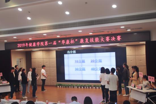 第一届“华康杯”康复技能大赛圆满落幕为了促进同学们更加扎实地掌握康复技能,进一步调动广大学生的学习积极性,培养康复治疗学应用型人才。2019年4月25日下午4:30,健康学院于晖华楼小剧场举办了第一届“华康杯”康复技能大赛决赛。出席本次大会的有党总支书记蔡勇永、院长助理杨宇然、康复治疗学专业主任刘敏、党总支副书记周建光、党总支副书记黄璐、应用心理学专业党支部副书记刘卫卫、健康学院办公室主任代维祝、专业课教师徐欣、刘吉辉、学生会指导老师徐红娟、辅导员孟赛、孙玺瑞、副辅导员万伟平以及各位三双教师。在主持人简短的开场白和队伍介绍后,本次大赛正式拉2019-05-07 -