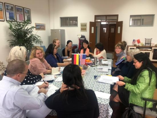 本学期中外合作专业外方教授专业课顺利开课2018年12月10日,我校2018-2019学年第一学期中外合作办学专业及国际课程合作专业引进外方的专业课程正式开课。该部分课程主要由与我校合作的国外大学派遣教授进行授课,我校配备专业教师及助教与外方教授进行课程对接与教学辅助。本学期共涉及到学前教育、康复治疗学、英语(英语教育)、视觉传达等专业,共计11门课程。来自美国威斯康星协和大学、北亚利桑那大学、西俄勒冈大学、伊利诺伊州立大学等16名教授分别为我校中外合作办学以及国际课程合作专业学生授课。为保证各门课程教学的顺利开展和外教在校期间的教学和生活,按2018-12-13 -