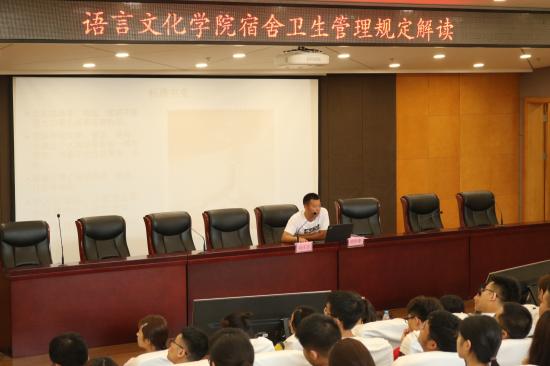 语言文化学院召开2018级新生宿舍卫生管理教育会议2018年9月18日下午,语言文化学院在辉华楼报告厅召开了宿舍卫生管理教育会议,语言文化学院党总支书2018-09-25 -