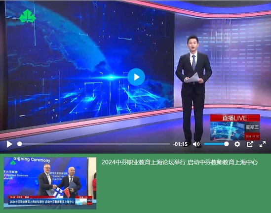 上海教育电视台 | 2024中芬职业教育上海论坛举行 启动中芬教师教育上海中心链接地址:http://topic.setv.sh.cn/setv_news/20241030/wx_index.html?n=82024-10-30