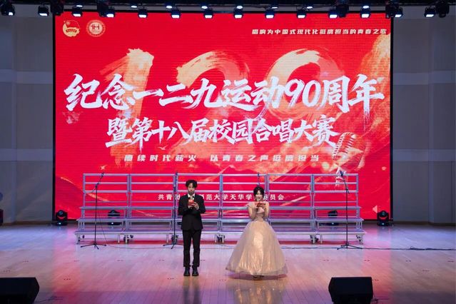 赓续红色薪火 唱响青春担当|我校纪念一二·九运动90周年暨第十八届校园合唱大赛圆满落幕12月2日晚,为纪念一二·九运动90周年,上海师范大学天华学院在晖华楼大礼堂举办“赓续时代薪火以青春之声挺膺担当”——纪念一二·九运动90周年暨第十八届校园合唱大赛圆满落幕。莅临本次活动的嘉宾有:上海师范大学天华学院党委书记高建华老师;党委副书记、校长龚春蕾老师;党委副书记、副校长许岳老师;副校长、人工智能学院院长凌旭峰老师;副校长、艺术设计学院院长徐子卿老师;副总监事长曹云林老师以及校级助理、学校各职能处室领导、各二级学院党总支正副书记、正副辅导员们。本次大赛还特别邀请了济华颐养院的长辈们作为观赛嘉宾,共享盛会。担任本次大赛的评委老师为原上海音乐学院艺术处处长、现天华学院大学生艺术团顾问秦尚修教授;上海市青年文联会员、上海音乐家协会会员、合唱专业委员会会员,现任上海工艺美术职业学院团委副书记、艺术教育中心教师郑雪老师;上海市合唱联盟学校教师韩萍老师;上海师范大学“我們”教师合唱团指挥,上海市曹鹏基金会“天使知音”合唱指挥教师张轩豪老师。活动现场,各学院合唱团依次登台献唱,以红色经典曲目为主线展开表演。从艺术设计学院、语言文化学院的创意编排,到教育学院、健康学院饱含深情的演绎,再到商学2025-12-17 -
