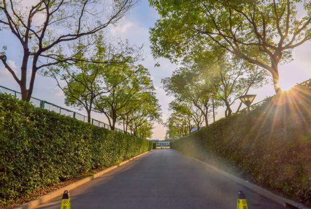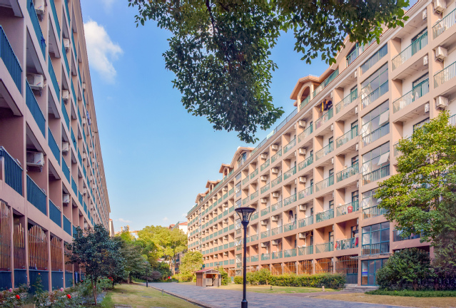 现代楼宇与葱茏绿意相映成趣,勾勒出人文与自然共生的诗意空间