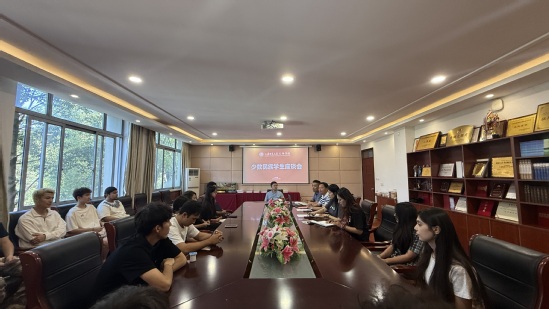 2025 年 10 月 10 日中午,我校少数民族学生代表座谈会在月华楼270会议室召开。学校副校长徐子卿、武装部部长卢建兵、资助中心主任朱可、少数民族辅导员阿迪拉老师出席会议,会议由学保处副处长张军主持,各民族学生代表齐聚一堂,共话校园生活,共谋成长发展。