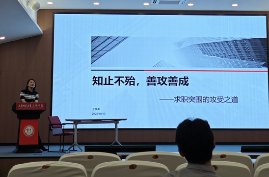 王雅英老师结合自己20余年人力资源管理经验与10余年职业生涯规划实践,为同学们带来了一场内容充实、贴近实战的求职指导讲座。