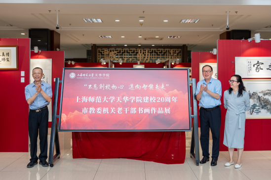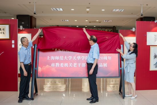 1015日中午,在庆祝建校20周年之际,学校在图书馆一楼大厅举办“不忘创新初心,迈向智能未来”上海市教委机关老干部书画展开幕式。党委书记高建华、校长龚春蕾顾问委员会主任郭伟奇等校务委员会领导,及各二级学院、职能处室负责人出席活动