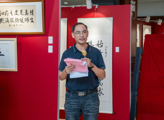 活动由校级助理、党办主任、宣传部长齐砚奎主持。他回顾了今年五月上海市教卫机关老干部书画组来校开展书画艺术交流活动的情景。当时,在市教委原主任张伟江,原副主任瞿钧、王奇等带领下,书画组一行30余人莅临我校,围绕办学理念、部门工作格言等主题创作了37幅作品。此次书画展展出这些墨宝,为校园增添了浓厚的文化氛围。