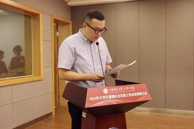 大会中,与会师生共同观看了2025年暑期社会实践工作回顾视频。校团委副书记邱晟吉、沈洁为各学院团队代表颁发了上海师范大学天华学院2025年大学生暑期社会实践立项团队结项证书。校团委书记沈捷宣读了《关于上海师范大学天华学院2025年大学生暑期社会实践工作表彰决定》。与会领导分别为获得“优秀个人奖”“优秀团队奖”和“优秀组织奖”的代表颁发荣誉证书。商学院殷明宇同学与教育学院“畅通无阻”团队项目负责人李沛蓉分别代表暑期社会实践优秀个人代表和暑期社会实践优秀团队代表进行发言,分享天华学子用专业服务社会、以创新激活传统的青春担当的过程。教育学院分团委书记孙圣东作为优秀组织单位代表发言,分享了学院在构建实践育人长效机制方面的经验与思考。学保处处长刘洪伟在总结讲话中充分肯定了今年暑期社会实践取得的成效,并提出三点希望,强调学校将持续完善实践育人体系,为学子成长成才搭建更广阔的平台。