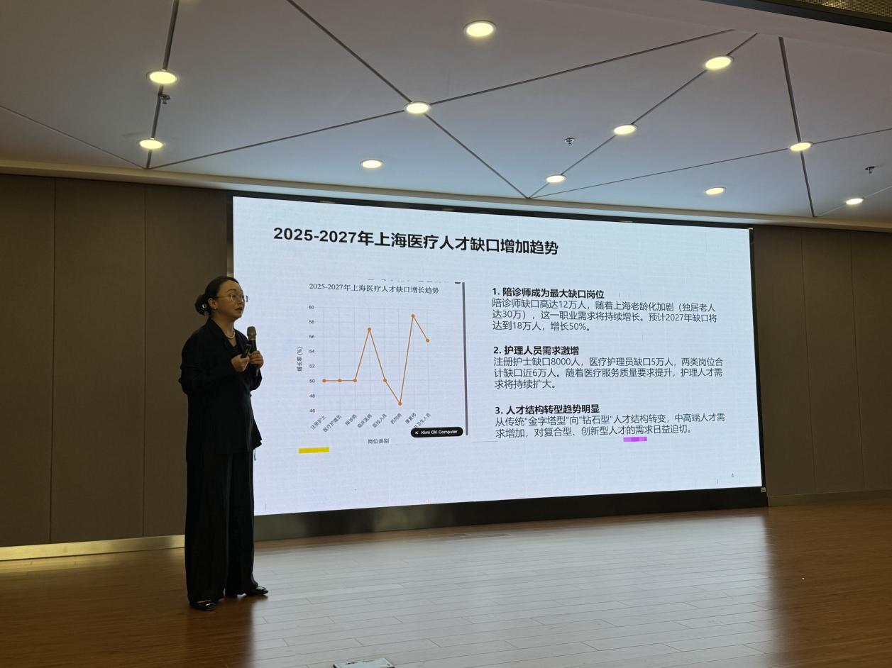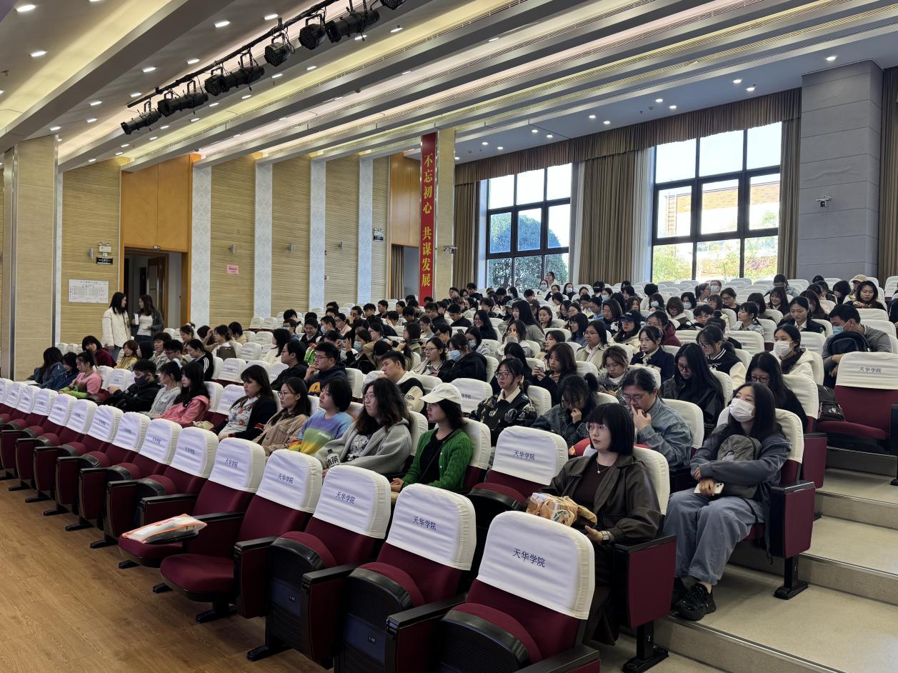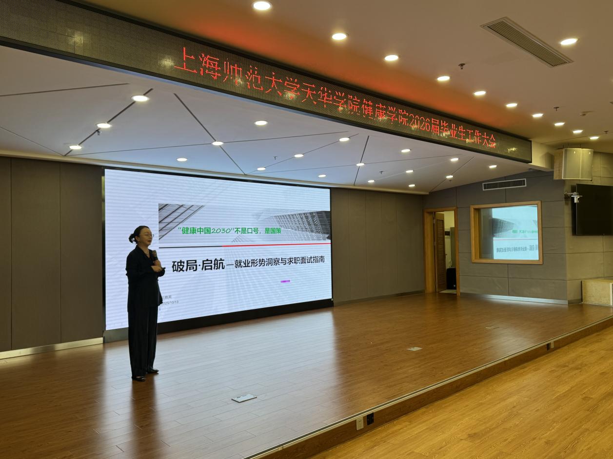1028午,由上海师范大学天华学院就业与生涯指导中心联合健康学院举办的“破局致远,智启未来——就业形势洞察与求职面试指南”讲座在华楼报告厅顺利举行。本次讲座特邀精纳生涯工作室创始人、上海市就业服务专家王雅英老师担任主讲嘉宾。健康学院相关教师、就业与生涯指导中心教师及毕业班学生共同出席了本次活动。