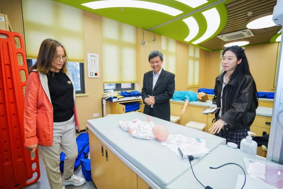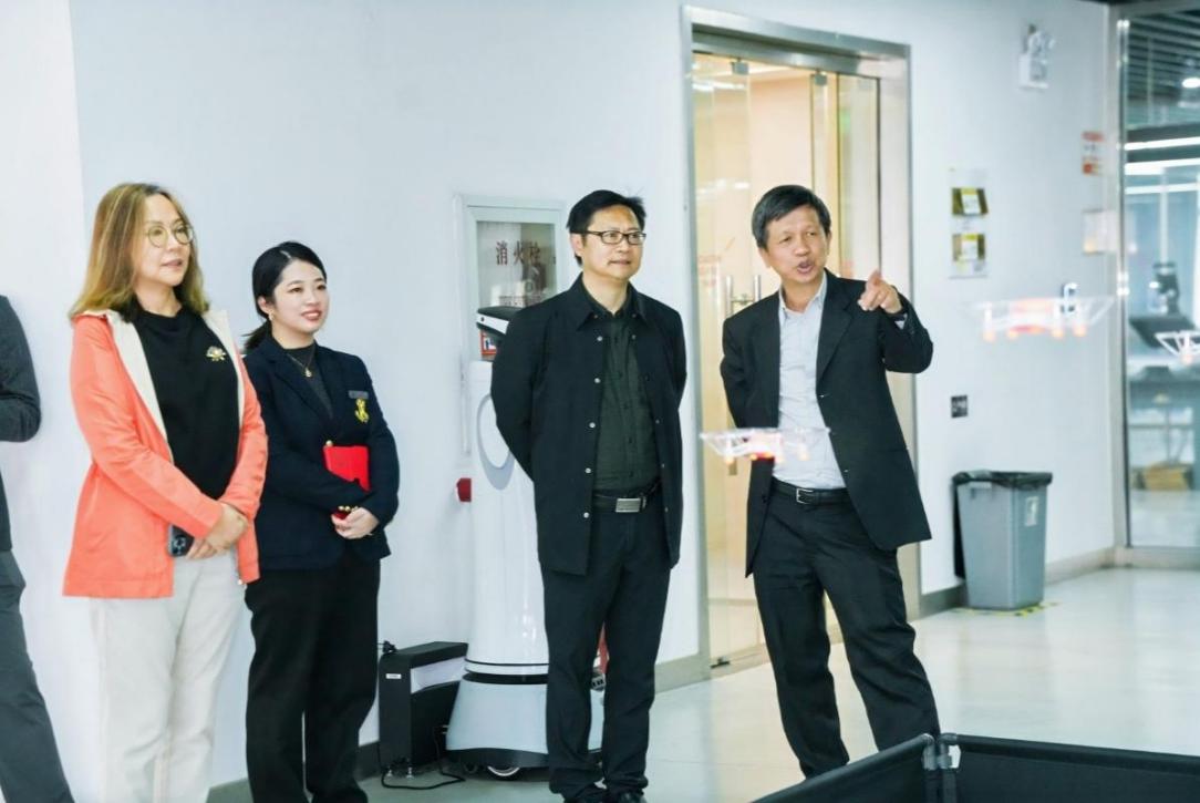 下午,梁杰雄院长和孔丽娟主任在凌旭峰副校长和国际交流处胡雅楠处长的陪同下,兴致勃勃地参观了鑫华楼、旭华楼等多间实训室以及东校区建设情况,对外合作培训学院常务副院长周建文、艺术设计学院副院长包臻隽等细致介绍学校特色建设与未来规划,两位嘉宾对学校未来人工智能赋能各学科的发展前景赞不绝口。