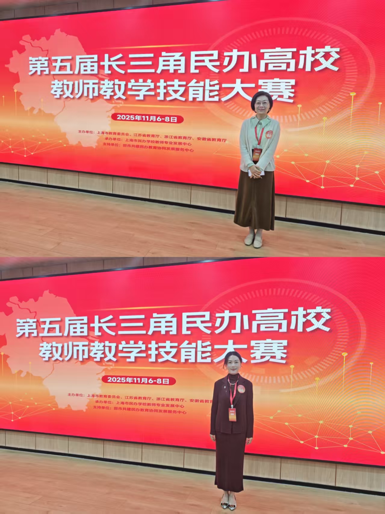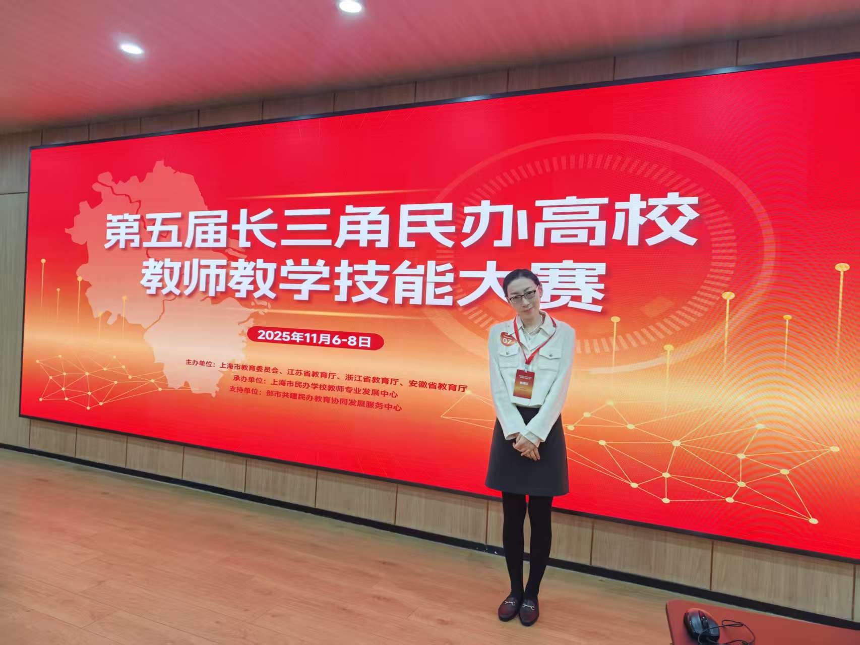 11月7日至8日,由上海市教育委员会、江苏省教育厅、浙江省教育厅、安徽省教育厅联合主办,上海市民办学校教师专业发展中心承办的第五届长三角民办高校教师教学技能大赛在上海师范大学成功举办。本届大赛精准覆盖文、理、工、艺术、思政五大学科领域,设置10个竞赛组别。经过校内选拔和省级角逐,我校语言文化学院卜迅、健康学院杨宇然、通识学院梁洁三位教师成功晋级决赛。教师工作部副部长李艳艳亲自带队,为参赛教师提供全程支持与保障。经过激烈比拼,卜迅老师荣获二等奖,杨宇然、梁洁老师荣获三等奖。