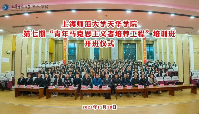 2025年11月18日下午16:30,上海师范大学天华学院第七期“青马工程”开班仪式在晖华楼报告厅举办。校级助理、党办主任、宣传部部长齐砚奎,马克思主义学院院长刘天翔等校领导,马克思主义学院专业教师、各学院分团委书记、成长导师团及全体学员出席仪式。