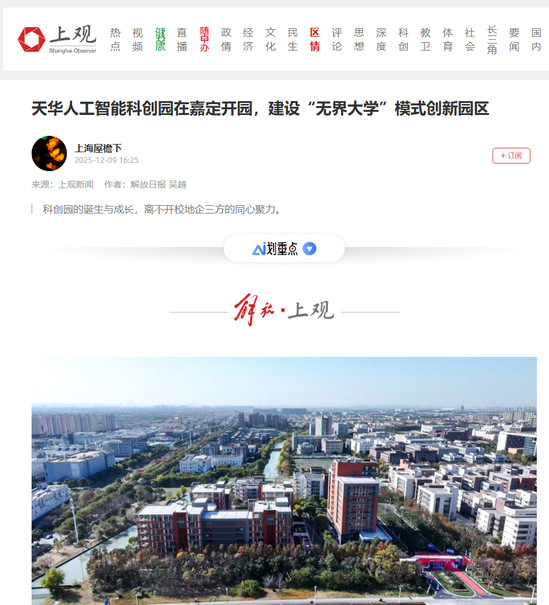 标题:天华人工智能科创园在嘉定开园,建设“无界大学”模式创新园区