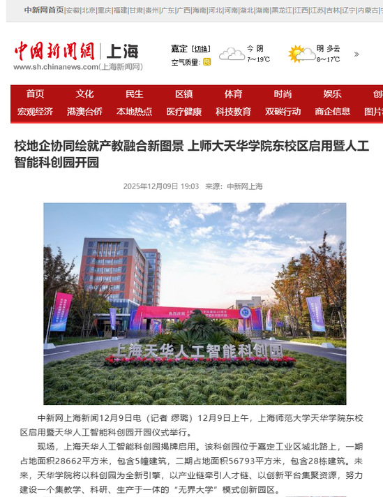 标题:校地企协同绘就产教融合新图景 上师大天华学院东校区启用暨人工智能科创园开园