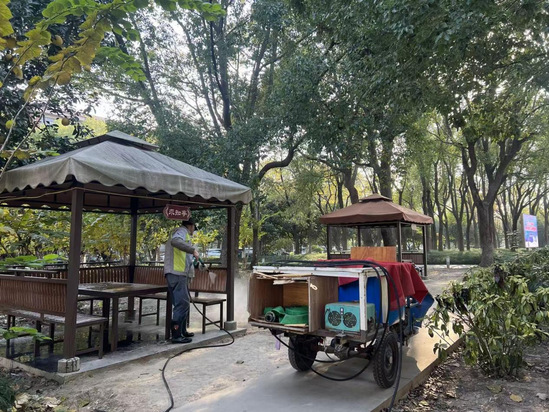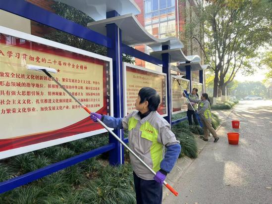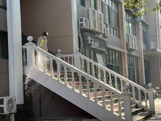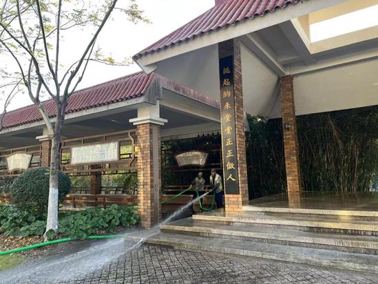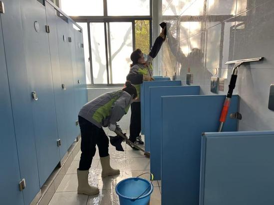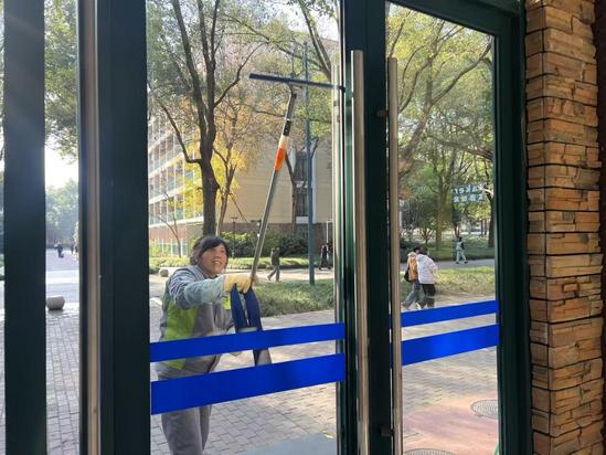 保洁团队:对光华楼、日华楼等主要教学楼及康华楼进行深度清洁,并对教学楼周边公共区域开展系统性清扫,以崭新面貌迎接校庆。