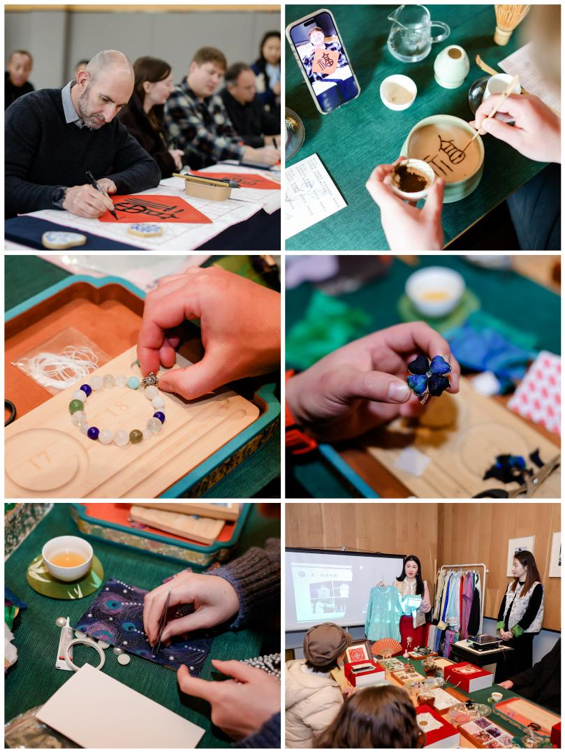 开幕仪式上,海外青年使者与天华师生共同参与温馨感人的校庆活动,中外学子携手为学校送上生日祝福,以文化为纽带正式开启交流之旅。活动期间,青年使者们深度探访上海城市地标:漫步外滩感受百年风华,驻足陆家嘴见证现代繁荣,徜徉上海博物馆品读历史底蕴。更令人印象深刻的是一系列沉浸式非遗实践课——提笔习字体悟汉字韵味、手绘青花传承匠心工艺、体验点茶感受宋韵风雅、制作手串领略传统美学、试穿汉衣触摸服饰文化、学习古香感知嗅觉非遗,每一次亲手实践都是对中国传统文化的贴近与理解。