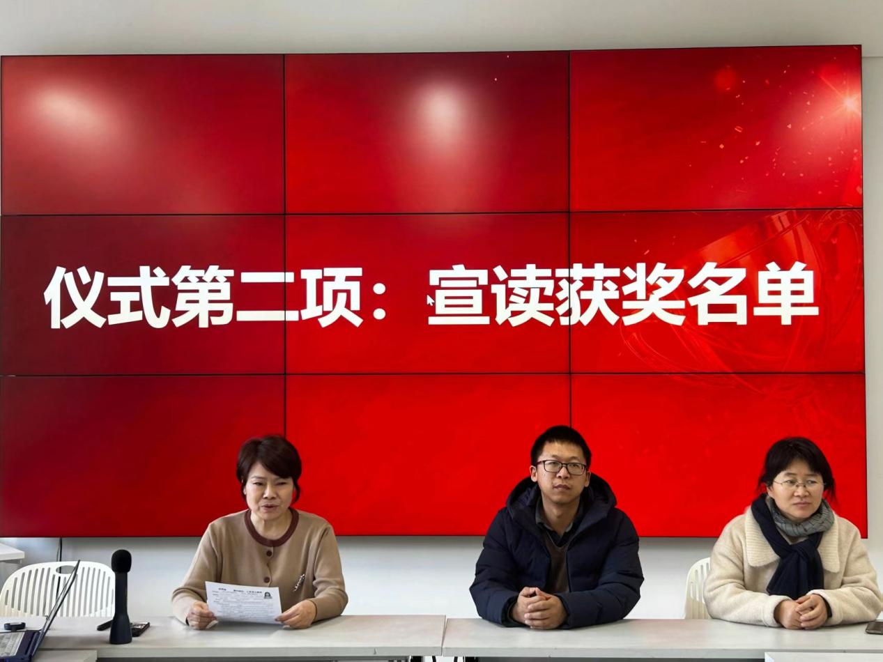 仪式最后,主持人向全体同学发出号召:"希望获奖同学珍惜荣誉、再接再厉,在未来的职场探索之路上持续精进;也期待更多同学以她们为榜样,积极投身各类职场赋能活动,不断锤炼本领、提升核心竞争力,为职业发展奠定坚实基础!"