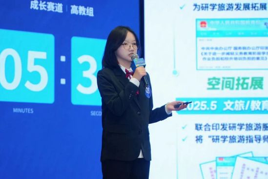谭思婕同学以“用城市智慧点亮乡土,让乡村因研学绽放新机”为主题,立志成为一名链接城乡纽带的研学旅游指导师。她的演讲从“耕读兴乡”的初心出发,系统阐述了她通过“三下乡”实践、研学课程设计、项目统筹执行,深入乡村挖掘文化资源,并将城市视野与乡村实际相结合,致力于构建“城乡双向赋能”的研学体系。她强调以实践赋能乡村,以创新活化乡土,展现了青年学子投身乡村振兴的使命担当与行动力。