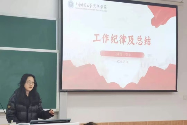 为持续推进学风建设工作,2026年3月4日16:15上海师范大学天华学院2025-2026学年第二学期学风督察培训会在日阶302召开。本次会议以学风建设为核心主题,聚焦提升学生管理队伍专业素养,旨在为优化校园育人环境发挥积极作用。校学风督察部成员及相关学生干部参与本次培训,会议由校学风督察部组织召开。