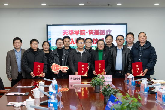 在全体与会嘉宾的共同见证下,天华学院副校长凌旭峰与奥芮济医疗创始人、总经理张小农签署校企合作框架协议,天华学院园区办公室主任周建文与隽美医疗总经理李娜签署入驻合同并完成入驻钥匙交接,一系列签约与交接环节,标志着双方的合作迈入实质性落地阶段。