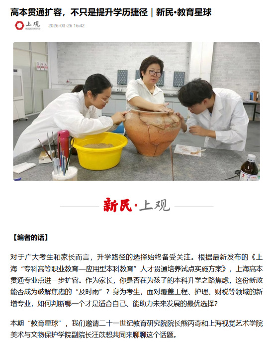 原标题:《高本贯通扩容,不只是提升学历捷径|新民·教育星球》