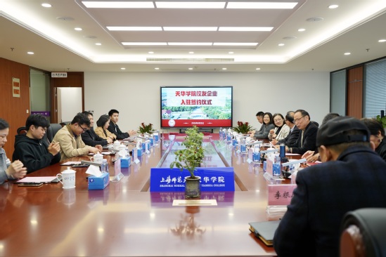 2026年4月3日下午,上海师范大学天华学院首批校友企业入驻科创园签约仪式在科创园1号楼15楼会议中心举行。
