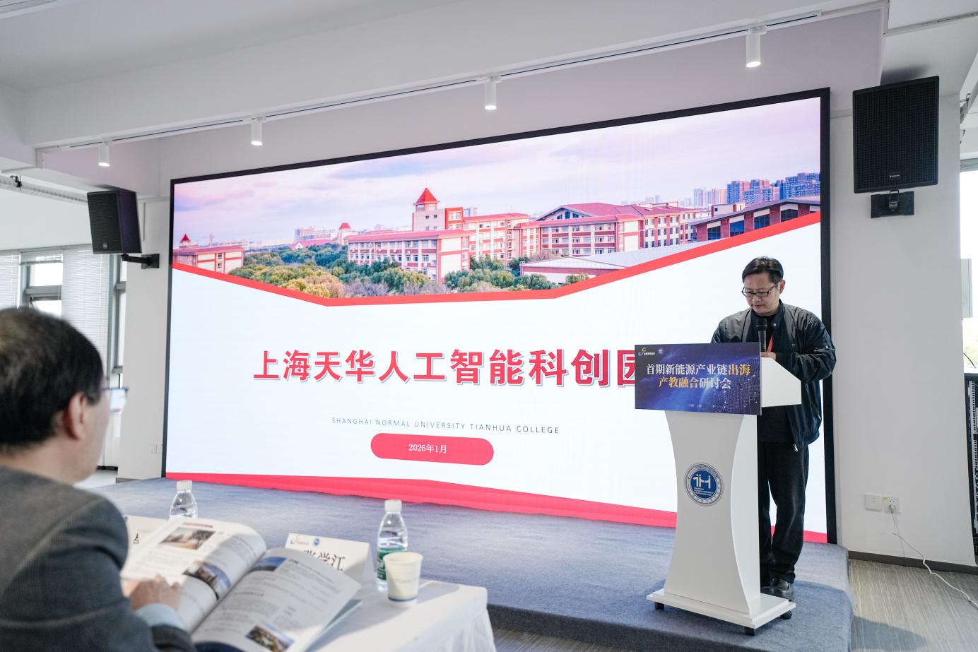 凌旭峰副校长介绍了上海师范大学天华学院在产教融合、人才培养、人工智能科创园建设等方面的实践与成果,他表示,高校作为人才培养的核心阵地,将积极对接新能源企业出海需求,优化专业设置、共建实训基地与定向人才培养班,为产业出海输送复合型专业人才,推动产学研深度融合落地。