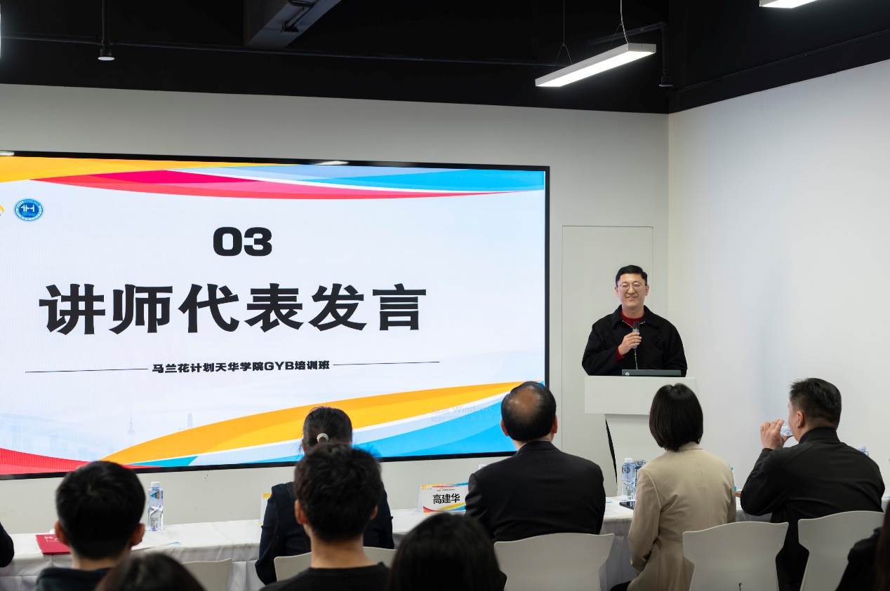上海对外经贸大学创业学院副院长高伟作为导师代表发言,他结合自身双创教育经验,鼓励学员们打破思维局限,以敢闯敢试的勇气直面挑战,以脚踏实地的态度深耕实践,在培训中收获成长、在探索中成就梦想。