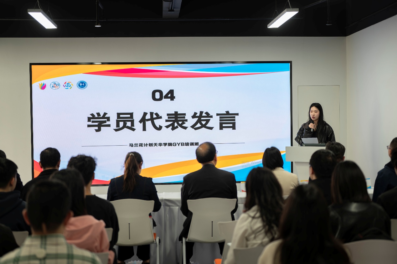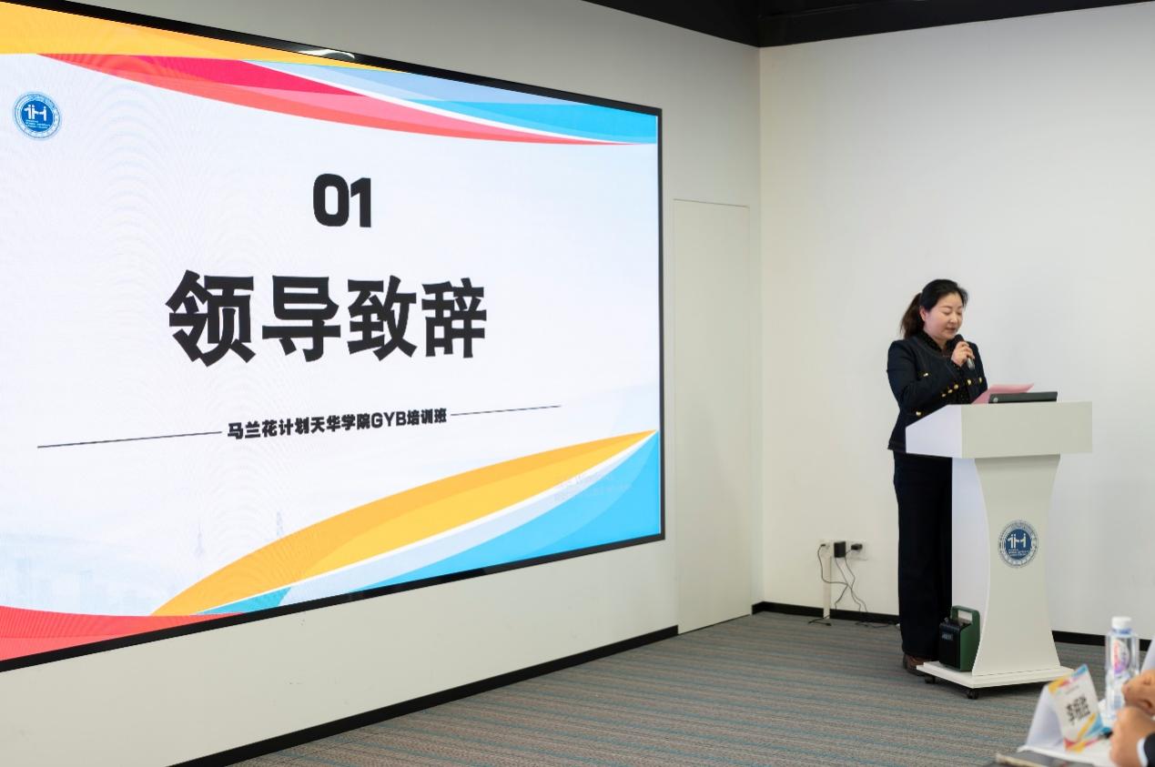 仪式上,嘉定区就业促进中心副主任沈贞发表致辞。她指出,创新创业教育是新时代人才培养的重要组成部分,学校始终高度重视学生双创能力提升,以“马兰花计划”等国家级创业培训项目为抓手,不断完善人才培养机制,强化实践育人环节。她希望全体参训学员能珍惜此次系统化学习的机会,在培训中开拓思维、锤炼本领,将所学知识转化为创新实践的动力,在新时代的创业浪潮中勇立潮头、奋勇争先。