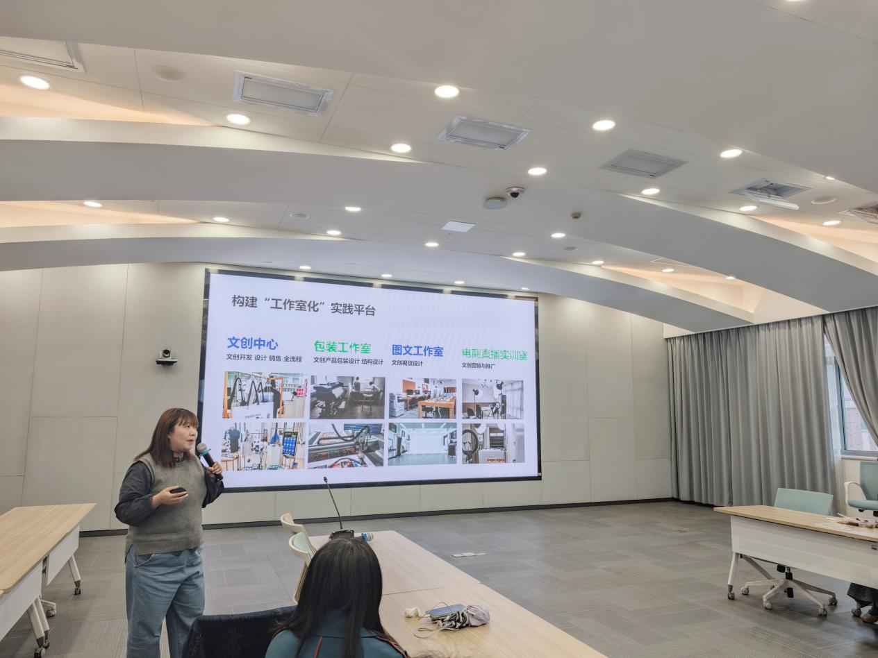 针对上述痛点,张烨老师系统介绍了以校企共建教学体系、项目驱动教学、多元实践平台建设为核心的产教融合路径。她表示,通过开发项目制课程、组建双师教学团队、搭建校企联合工作室与实训基地,并引入企业真实项目推动作品孵化与转化,能够有效打通教学与市场之间的壁垒。在该模式下,艺术设计学院学生已成功完成多项城市与校园文创设计作品,实现了教学成果的市场化对接,显著提升了文创设计专业人才的培养质量。