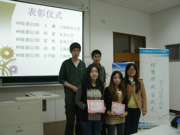 | 为响应学院“五月学风建设月”活动,2013年5月8日晚电信系于日阶405室组织召开了2009级考研经验交流会。电信系团总支书记金玫老师及2009级阳婷等四位2013年成功考研的优秀学子参加交流会。会议旨在为电信系2011-2012年级有意向考研的同学介绍优秀学子的考研经验及心得,为低年级学子考研做好充分准备。(金玫) | ||