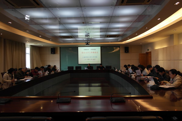 | 为了迎接上海市普通高校语言文字工作评估,我校于3月14日下午在明华楼五楼会议中心召开了语言文字工作推进会,会议由教学副校长陈新斌主持,各部门领导出席。 会上,陈新斌校长介绍了我校参加2014年上海市普通高校语言文字工作评估的时间,目前工作的进展情况,强调了上海市普通高校语言文字工作评估的重要性。接下来,陈校长解读了《上海师范大学天华学院语言文字达标评估工作职责分工表》,对各项工作一一落实,并公布了迎评各项准备工作的时间节点。 | ||