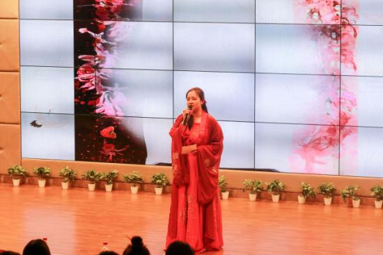 取自四大名著之一《红楼梦》的舞台剧——《香菱学诗》拉开了本次比赛的序幕。学子们将“香菱学诗”的片段与经典阅读相结合,配以优美的服装,清雅的背景音乐,将香菱在学诗过程中认真对待每一件事,不放弃,不抛弃的精神展现的淋漓尽致,值得每一位学生去学习。