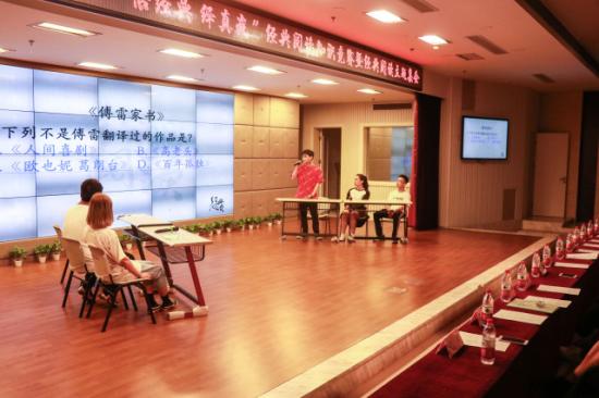 紧接着,进行了经典阅读知识竞答。此次竞赛满分为20分,分为选择题与填空题,以准确回答加分的方式累计积分,选手们通过抽签来决定回答的题库编号。在竞赛过程中,选手们回答出色,表现优异,赢得了在场观众的肯定与掌声,充分展现了我院学子的风采。