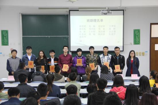 2016年4月27日中午12点,工学院2015-2016学年班助理、助教团队聘书颁发仪式在日阶104进行,出席的领导和老师有工学院副院长徐振、党总支书记刘香连、党总支副书记赵科、金玫、全体辅导员以及班助理、学生助教团队和15级各班班委。