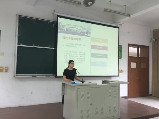 接着,学院党总支副书记徐姗姗上台,就学校学院在安全管理上的规章制度,向同学们做了详细的介绍。