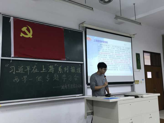 首先,学习宣传部部长朱展成为同学们详细介绍了习近平总书记在就任上海市委书记期间所提出的发展目标及任务。习书记提出了三条学习重点:上海是党的诞生地,要牢记历史使命;开明睿智才能进一步海纳百川;真正的业绩在老百姓的口碑里。其次,通过观看视频,同学们进一步了解上海未来发展放在全国发展的大格局中这一理念的重要性,上海成其大,在与其所拥有的包容心,同时这也是同学们需要时时刻刻铭记于心的重要部分。本次“两学一做”学习会时刻提醒积极份子要不忘初心,跟随党的脚步。