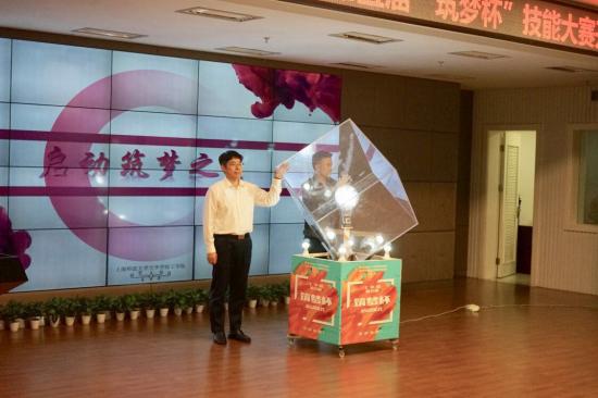 最后,吴国兴院长和赵科书记上台,正式启动由工学院学子亲手制作的筑梦杯启动装置——“筑梦之星”。随着“筑梦之星”的启动,掌声雷动,全场的气氛顿时到达顶点,在大家热烈的掌声中,第五届筑梦杯技能大赛启动仪式圆满结束。