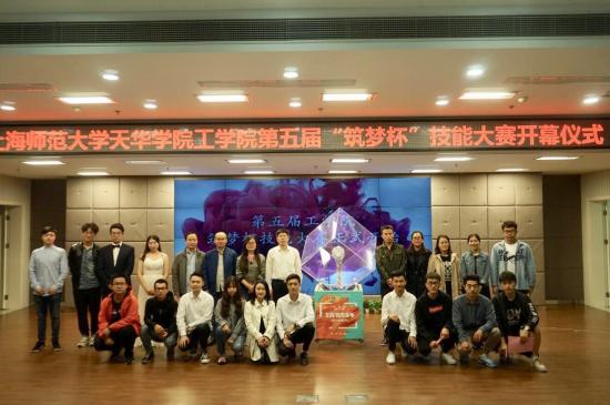 2017年10月18日中午12:00,上海师范大学天华学院工学院第五届筑梦杯技能大赛启动仪式在晖华楼小剧场举行。到场的嘉宾有工学院院长吴国兴,工学院党总支书记赵科,工学院党总支副书记通信党支部书记金玫,工学院分团委书记周期,实训处李忠唐以及其他各科任课老师。