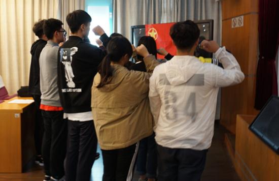 最后,在庄严而神圣的氛围中,在主持人的引导下,新团员右手握拳,面向团旗。掷地有声地宣读誓词,这代表了新团员的决心和信心,将努力成为一名优秀的共青团员。