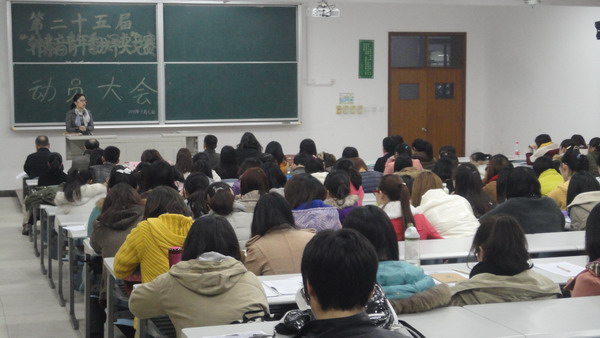 | 2013年3月6日,英语系举行第二十五届“韩素音青年翻译奖”竞赛动员大会,英语系万正方教授主持,学院副院长、英语系常务副主任史文博士到会作动员报告,系副主任�建维,上届比赛英译汉全国第一名获得者、主任助理黄蔚分别作交流发言。今后的三个月中,英语系十二名优秀青年教师和全校各系二百余名学生将一起“切磋、研讨”有关翻译问题,争取以良好的成绩回报学校。(英语系) | ||