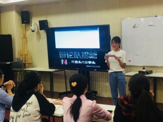 最后,由教育学院党总支书记答英娟老师作总结发言。答老师向所有来参加此次辩论培训会的同学表示欢迎,鼓励各初选人员带领班级同学积极参与到辩论活动中,充分发挥出自己的潜能。并强调在辩论活动中,认真探索,努力发掘辩论能力,成为更优秀的人才。