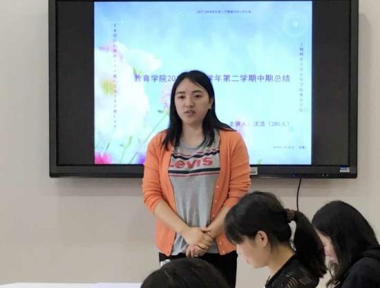 2018年5月22日下午14:30,2017—2018学年第二学期教育学院辅导员经验交流会在光华楼302会议室顺利召开。莅临本次会议的有教育学院党总支书记答英娟老师、教育学院党总支副书记何凯老师、教育学院分团委书记沈洁老师、艺术教育专业第一支部书记贾孟云老师、艺术教育专业第二支部书记狄怨怨老师、小学教育专业党支部书记颜银树老师、学前教育专业第二支部副书记姜婷婷老师以及教育学院各位正副辅导员们。
